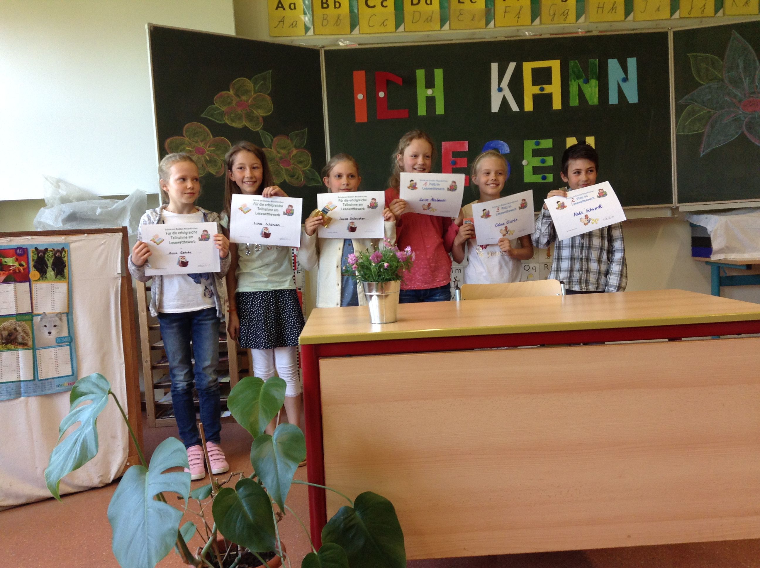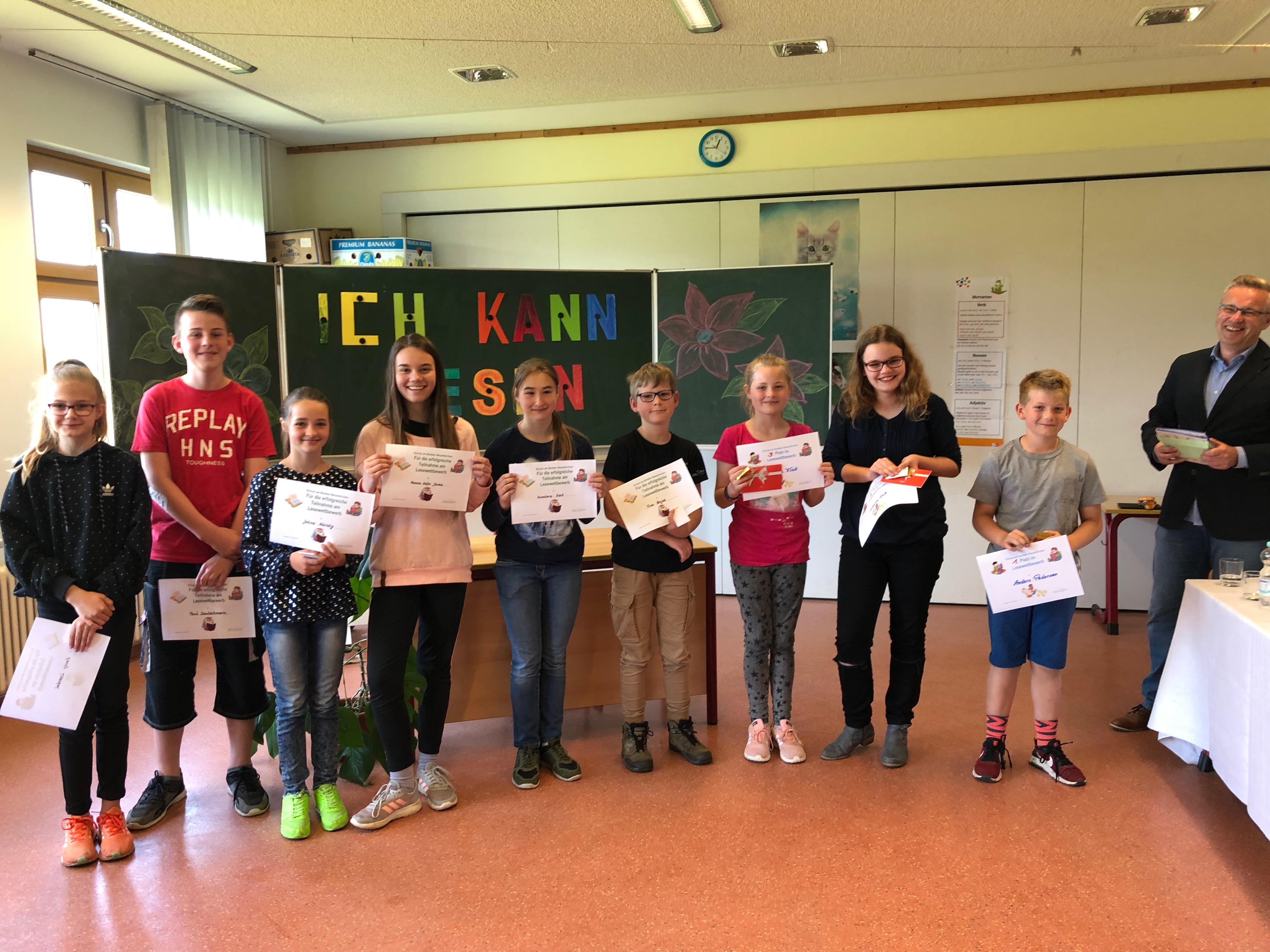 Zur Belohnung stehen Büchergutscheine und kleine Sachpreise bereit. In den Pausen war ein kleines Café mit Kuchen, Saft und Kaffee geöffnet.