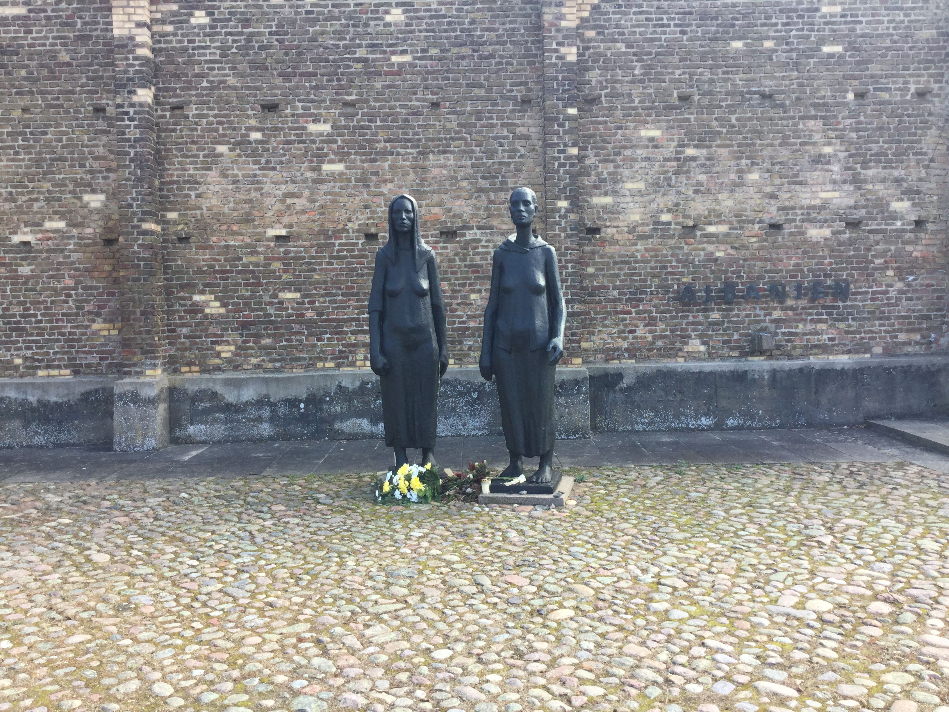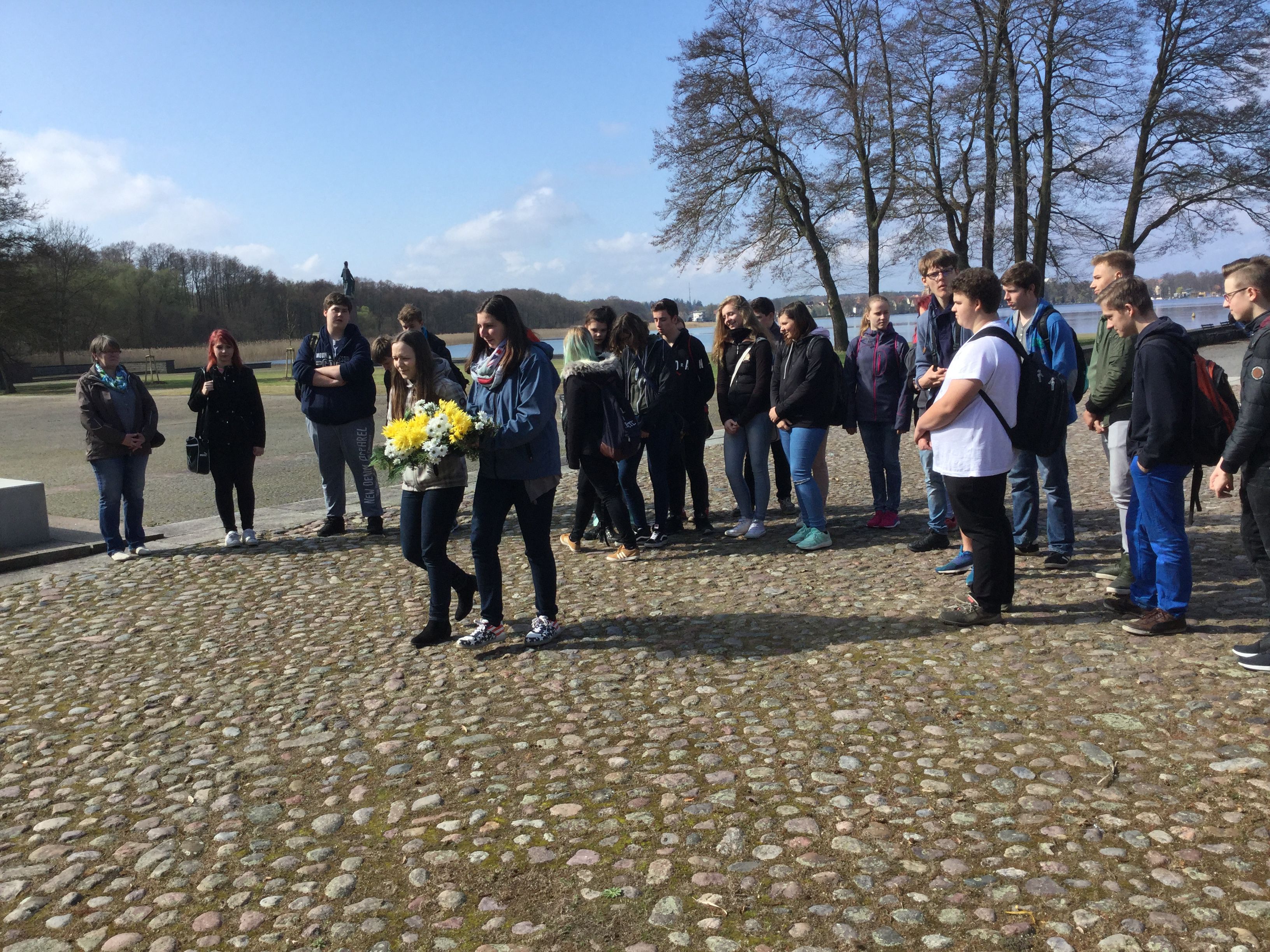 Zum Abschluss wurde von den Schülern ein Blumengebinde an der Skulptur „Frauengruppe“ niedergelegt und still der Opfer gedacht.
